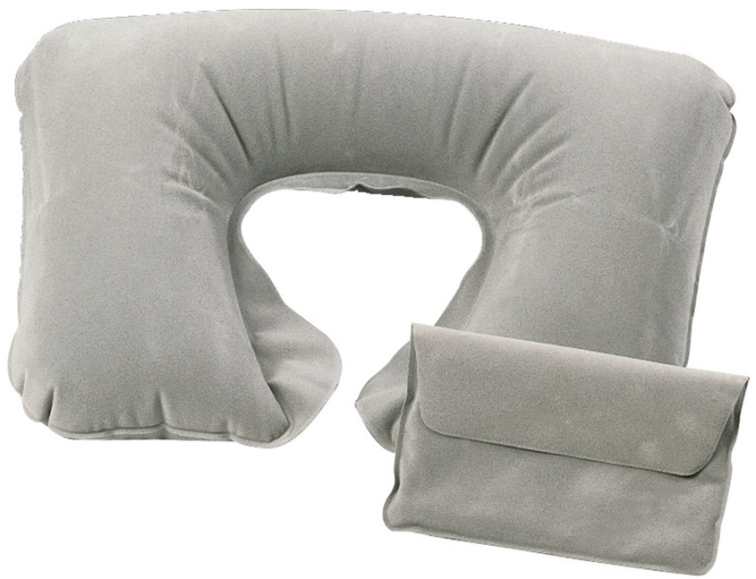 35 x 23 x 9 cm. (inflado). 17,6 x 12 cm (sobre). Tela flock símil terciopelo. Almohadón inflable con funda.