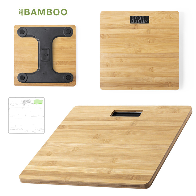 Báscula de línea nature en bambú, con base antideslizante. Display digital, con funciones de apagado automático, temperatura, tara y selección de unidad de pesaje. Alimentación a pilas (2xAAA no incluidas). Presentada en atractiva caja de diseño eco. 2 Pilas AAA No Incluidas