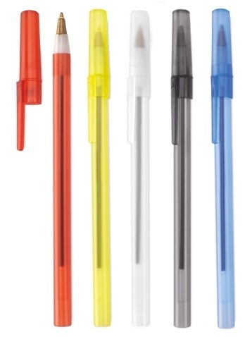 Bolígrafo de capucha de diseño clásico con cuerpo de suave acabado transparente en cálidos colores. Tinta azul.