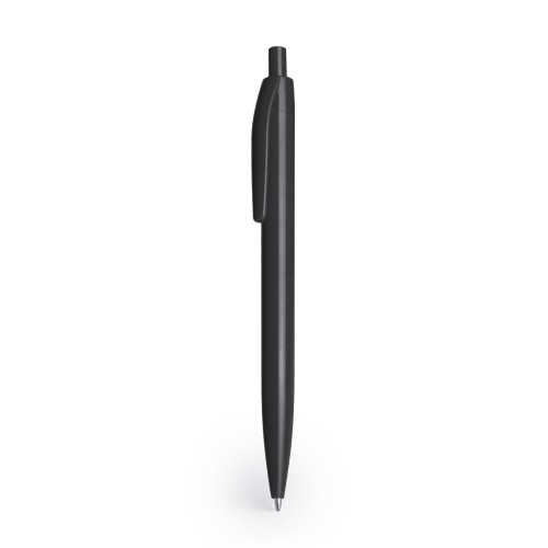 Bolígrafo de mecanismo pulsador de acabado brillante. Fabricado en ABS de tinta negra.