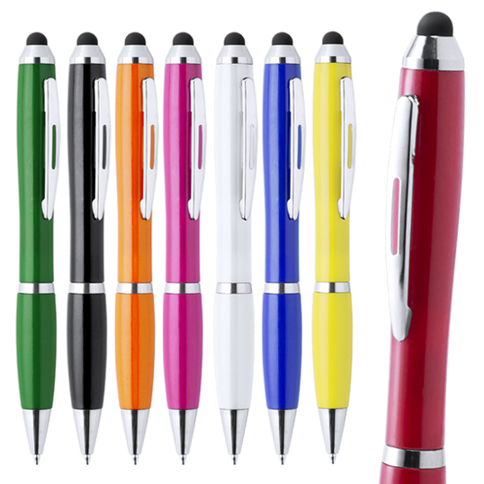 Bolígrafo puntero de colorido diseño, de apertura giratoria y cuerpo en vivos colores brillantes a juego con la empuñadura. Con detalles cromados y clip metálico. Cartucho jumbo y tinta azul.