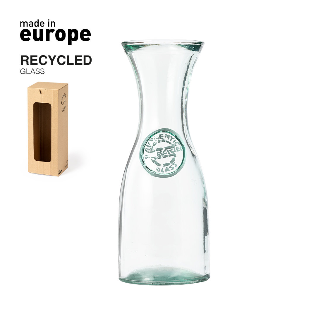 Botella de línea nature de 800ml de capacidad. De fabricación europea y hecha en vidrio reciclado GRS (Global Recycled Standard / Estándar de Reciclaje Global), que garantiza el origen reciclado del material usado para fabricar el producto. Presentado en estuche de cartón reciclado con ventana. 800 ml