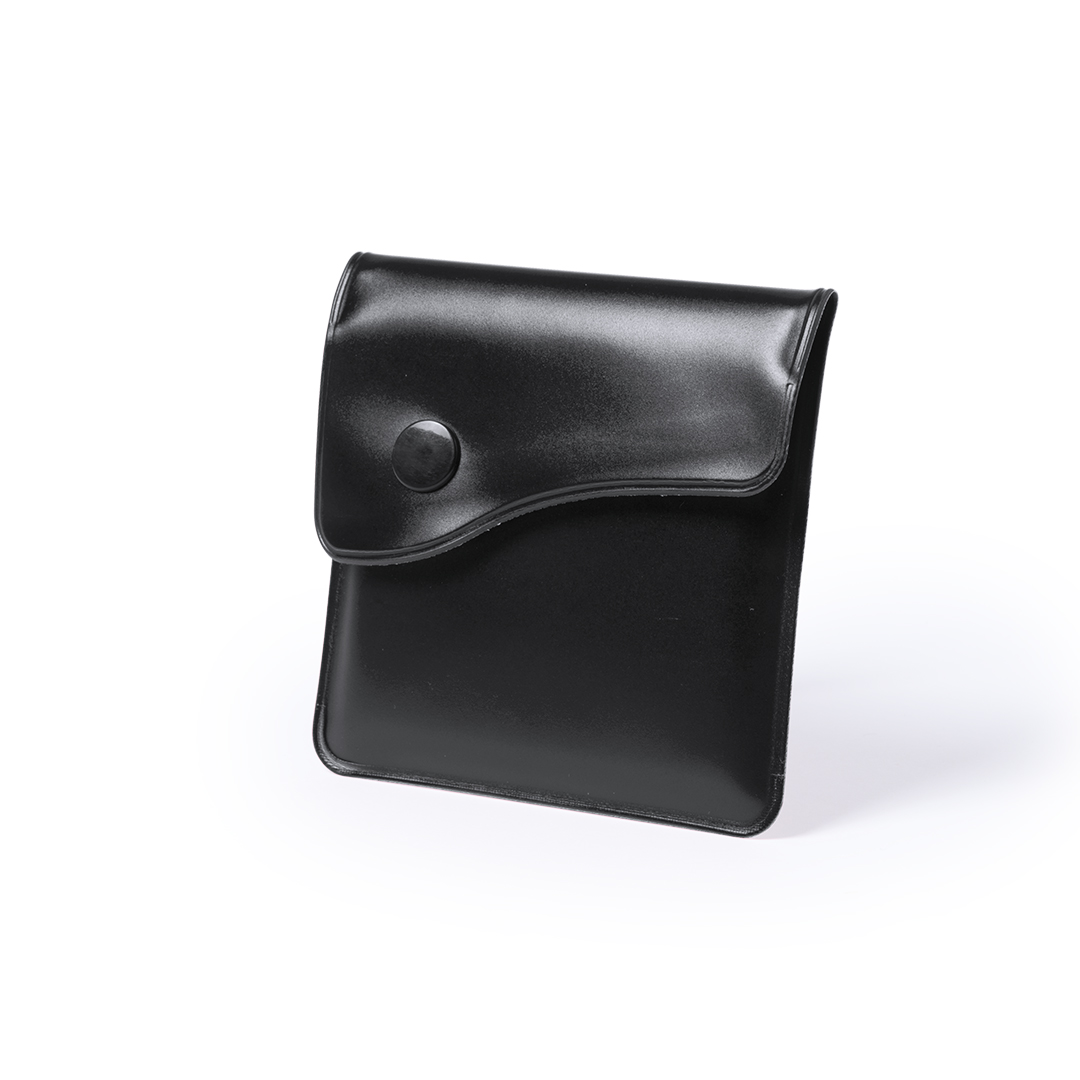 Cenicero de bolsillo con cuerpo acabado en vivos colores e interior en aluminio ignífugo. Original cierre de solapa con botón.