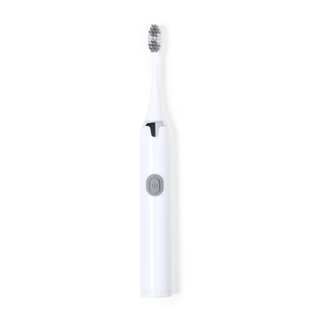 Práctico cepillo de dientes portátil eléctrico. Eficiente limpieza gracias a su función de vibración y a sus agradables cerdas. Funciona con 1 pilas AA (no incluida) introducidas por la base. En color blanco y plateado, presentado en una caja de diseño kraft. 1 Pila AA No Incluida