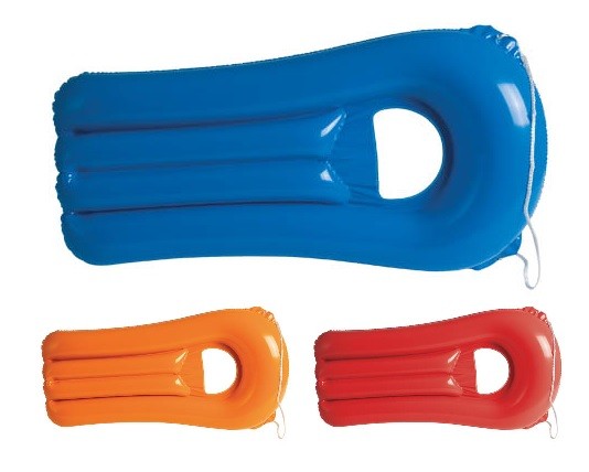 Original colchoneta inflable de PVC con ventana transparente y cordón de transporte en vivos colores.