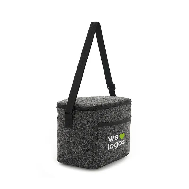 Cooler fabricado en tejido de punto como lienzo de nieve, con un revestimiento interior de espuma de polietileno y PEVA. Dimensiones: 22,5 x 18 x 16 cm. 6L