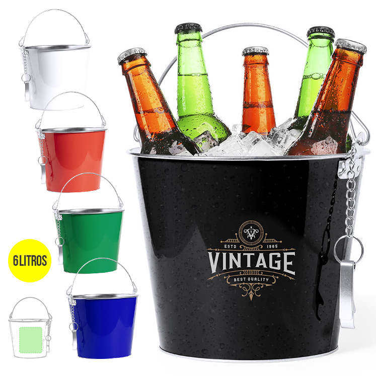 Cubo metálico de 6l de capacidad, con interior galvanizado y exterior disponible en variada gama de colores. Con asa, incluido abridor de aluminio y cadena en color plata. 6 L. Abridor Incluido