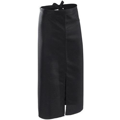 Delantal para cintura fabricado en resistente poliéster y en elegante color negro. De corte por debajo de la rodilla y con cintas de ajuste.