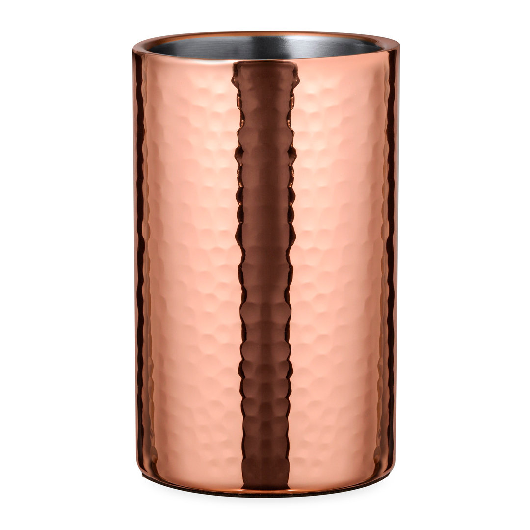 Elegante enfriador de 1 l de capacidad, fabricado en acero inox con recubrimiento de cobre galvanizado. Con original diseño en acabado brillo, es un perfecto accesorio para presentar con estilo las bebidas frías. Presentado en una exclusiva caja individual de diseño negra.