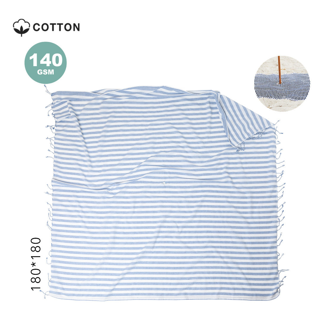 Esterilla de diseño bicolor, fabricada en material 100% algodón de 140g/m2, con orificio en el centro para la sombrilla de la playa. Tamaño 180x180cm, disponible en variada gama de colores.