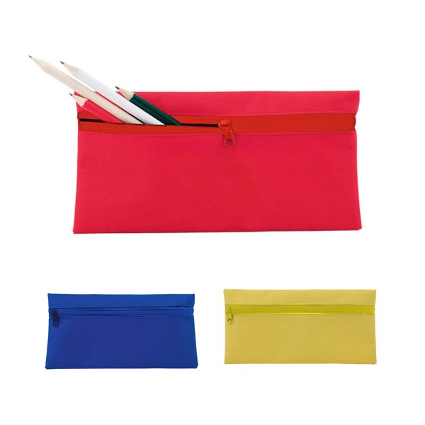 Estuche de cremallera frontal en resistente poliéster 600D de vivos colores. Con cremallera a juego.