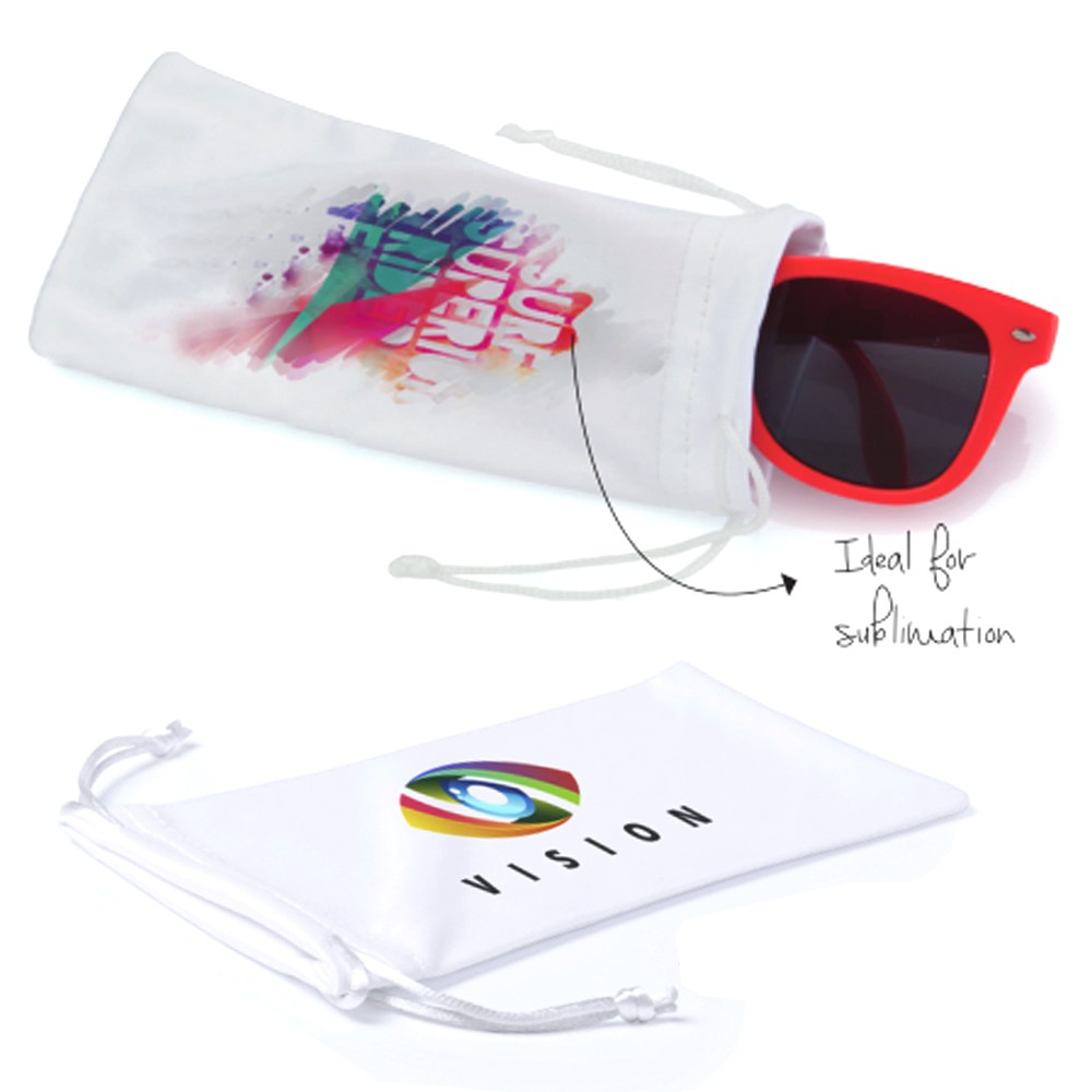 Funda de suave poliéster con cuerpo acabado en color blanco y cierre de cuerdas a juego. Especialmente diseñada para marcaje en sublimación.