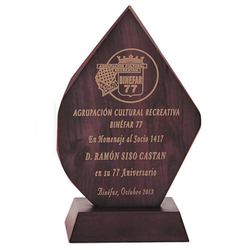 Galvano de madera MDF color Nogal con forma de hoja. Perfecto para grabado láser.