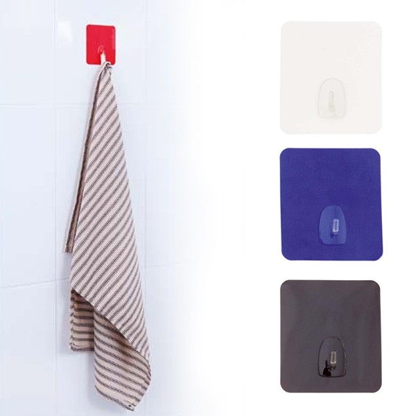 Gancho multiusos en resistente PET de vivos colores. Con superficie de fijación reutilizable y con alto poder de adherencia. Adhesivo. Reutilizable
