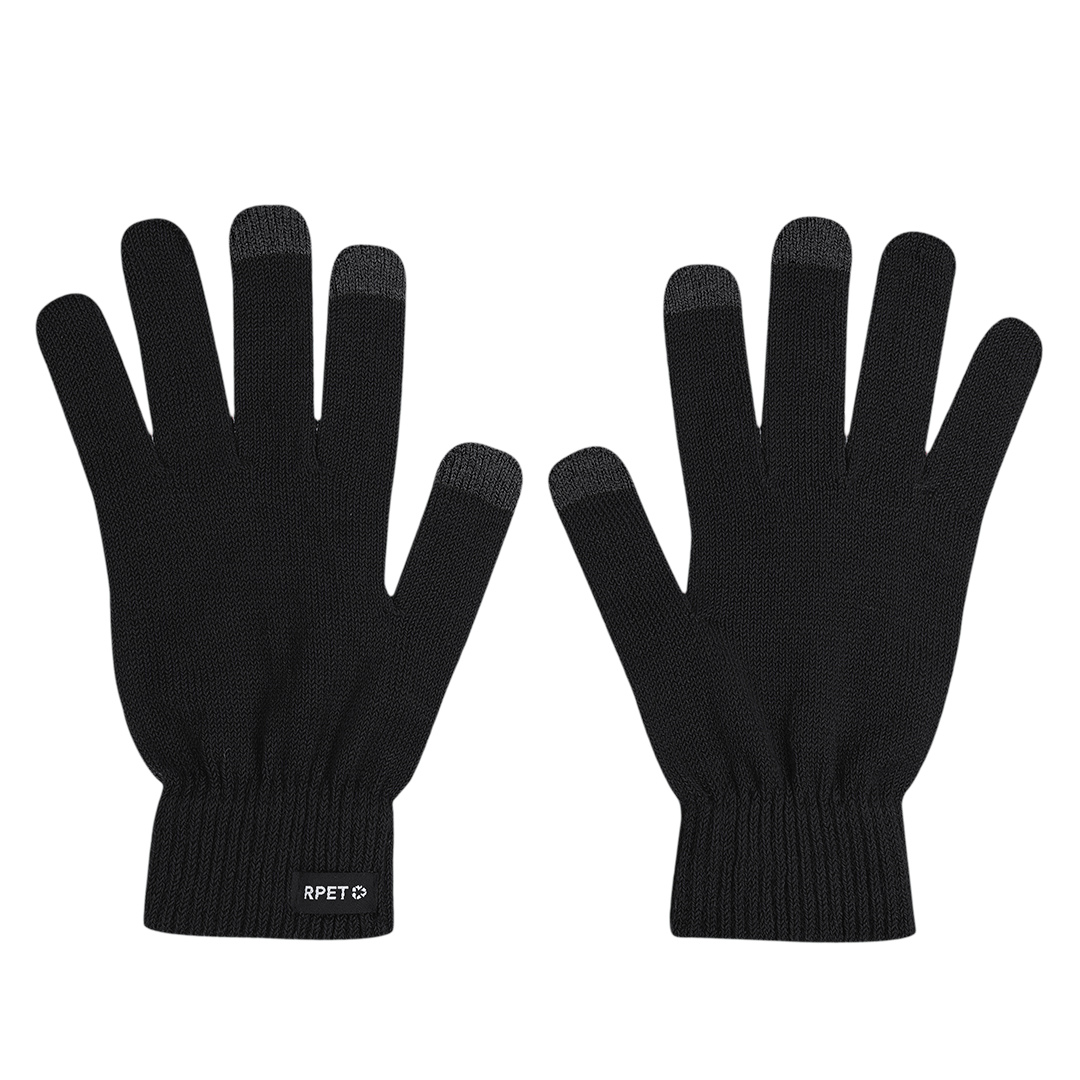 Guantes fabricados en cálido y suave tejido poliéster RPET. Con función táctil en dedos corazón, índice y pulgar a color. Talla única adulto. Con distintitivo RPET en etiqueta exterior. El material RPET se elabora a partir de plástico reciclado, para así fomentar la reutilización de residuos plásticos y ayudar a la sostenibilidad del planeta. Talla Única. Adulto