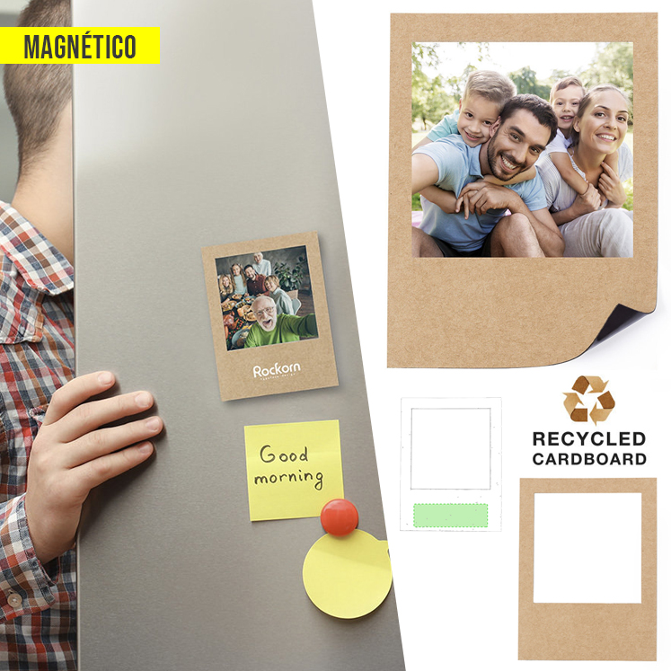 Imán portafotos en cartón reciclado de 185g/m2, para fotos en tamaño 8,5x9 cm Fotos: 8,5 x 9 cm