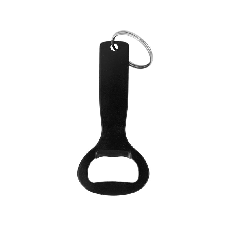 Llavero con destapador de aluminio. Medidas: 8,3 x 3,9 cm.
