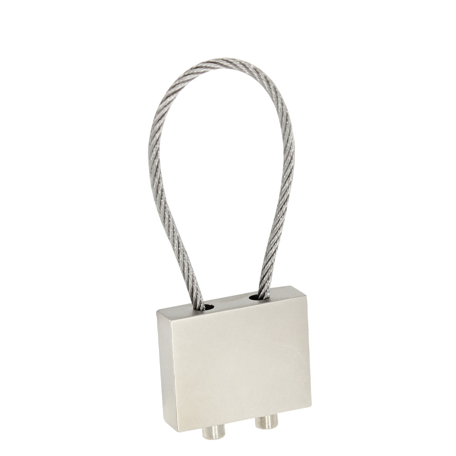 Llavero Metálico modelo "Candado". Presentación en estuche laminado negro con cuna aterciopelada.