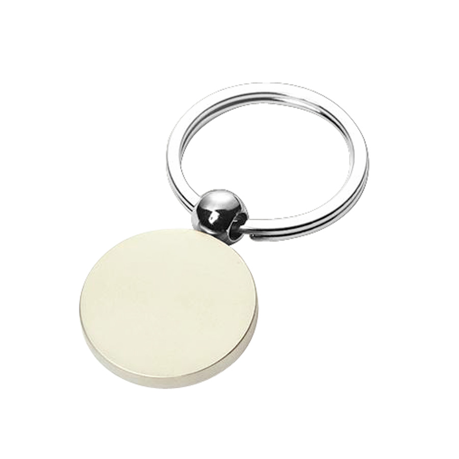 Llavero Metálico Redondo Plano. Presentación en estuche laminado negro con cuna aterciopelada.