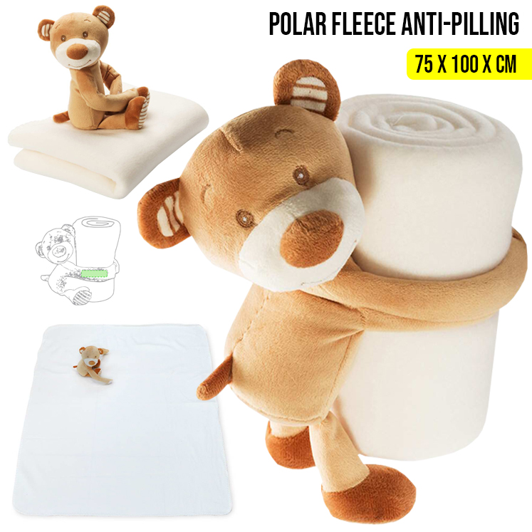 Divertida manta osito de peluche en suave y cálido material polar fleece de 200g/m2. En tamaño infantil 100x75cm. Anti-Pilling