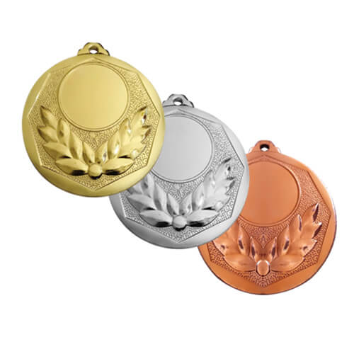 Medalla de 50mm de diámetro para reconocimiento con diseño hoja de laurel.