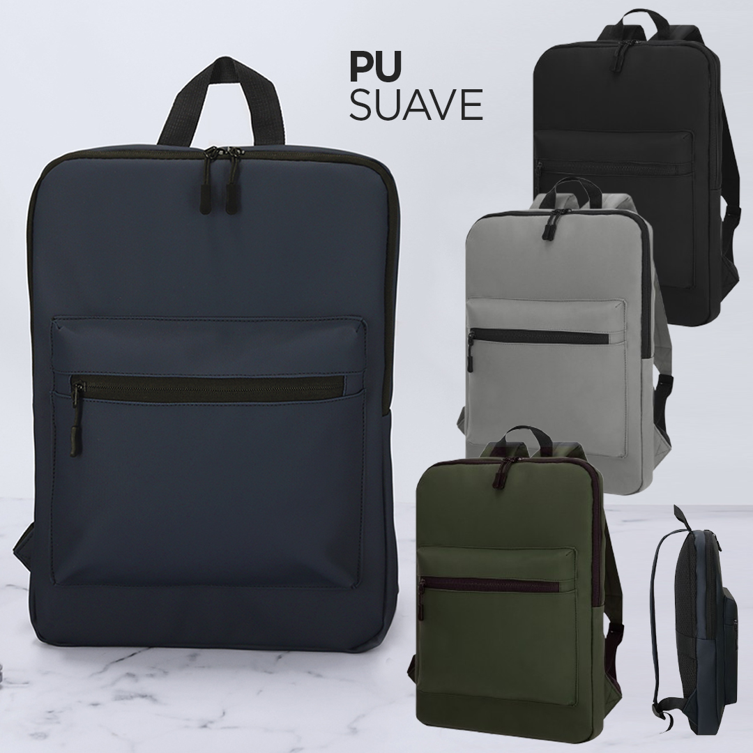 Mochila fabricada en suave PU. Con bolsillo principal de cierre de cremallera con doble tirador. Interior acolchado para portátil de hasta 15 pulgadas. Incluye bolsillo frontal con cierre de cremallera. Espalda y cintas acolchadas, con tela transpirable y ajustables. Incluye cinta de transporte para ajuste en trolley o maleta, ideal para viajes. Bolsillo Acolchado para Portátil. Parte Trasera y Cintas Acolchadas
