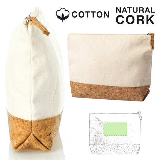 Neceser de línea nature en combinación de corcho natural y algodón crudo. Con cierre de cremallera y tirador en corcho a juego.