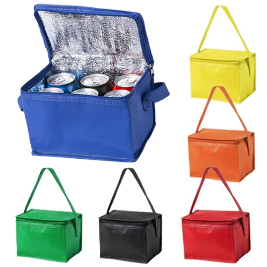 Nevera fabricada en resistente non-woven. Con compartimento de 3,2L de capacidad, cierre de cremallera y con cinta bandolera. Interior isotermo acabado en aluminio. Disponible en variada y llamativa gama de colores.
