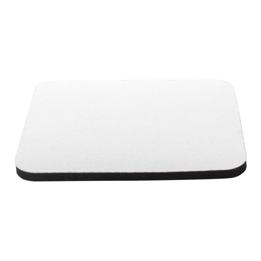 Posavaso cuadrado de 10x10cm. y 5mm de espesor, esquinas redondeadas, con base de silicona negra y cubierta de tela poliéster blanco para Sublimación.