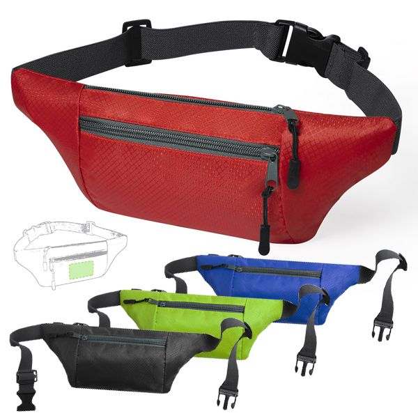 Riñonera en resistente material ripstop con diseño de panal. 2 bolsillos de cierre de cremallera, con cintas en tiradores para cómoda apertura. Cinta de nylon ajustable con cierre de hebilla. Diseñada para actividades deportivas y de ocio.