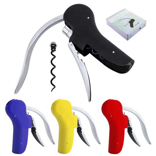 Sacacorchos premium con accesorios en acero inox y cuerpo en variada gama de vivos colores. Presentado en atractiva caja de diseño.