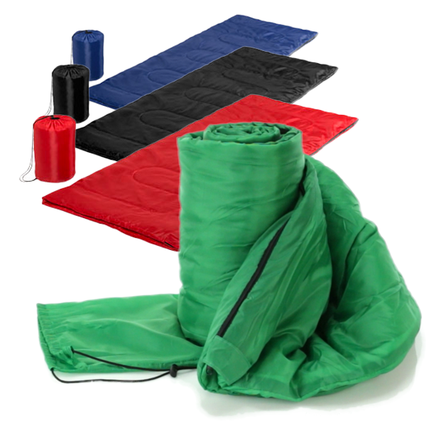 Saco de dormir en variados colores, de suave material con grueso acolchado interior. Con cierre de cremallera de apertura total con doble tirador interior y exterior. Funda autocierre a juego con resistente cordón. Funda Poliéster