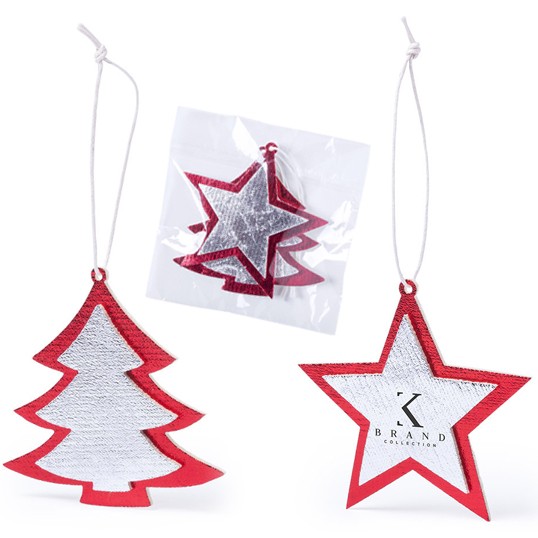 Set de figuras navideñas para colgar en material non-woven. Incluye árbol de navidad y estrella. 2 Piezas