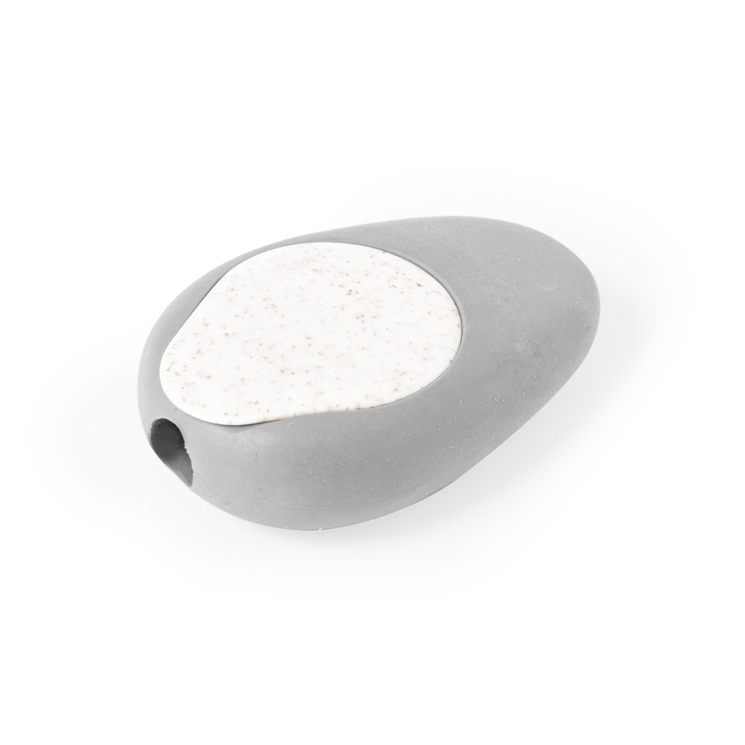Original sacapuntas fabricado en caña de trigo. Práctico sacapuntas de bolsillo de inspiración natural por su forma de piedra pulida con práctica tapadera fabricada en fibra de trigo, cómodo de usar y guardar. La caña de trigo fomenta la utilización de materias primas naturales, reduciendo así las emisiones contaminantes. Goma y Sacapuntas