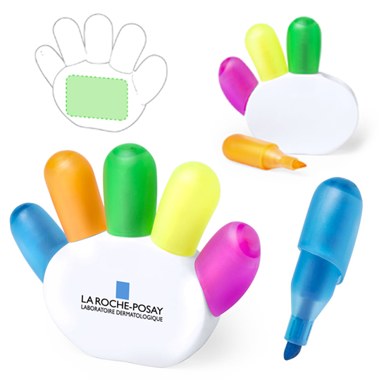 Set de marcadores con soporte. Incluye 5 marcadores fluorescentes de original diseño y soporte en color blanco con amplia superficie de marcaje. 5 Piezas