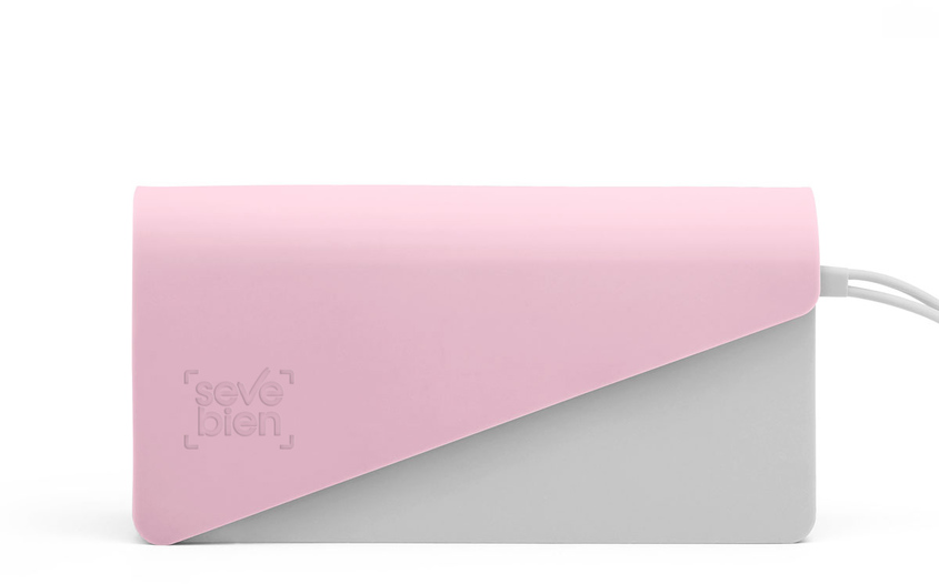 23,5 x 12 x 6,4 cm. Silicona. Sobre de silicona con solapa imantada y correa desmontable. Su interior tiene 3 compartimentos para guardar de todo. Presentación en caja de regalo.