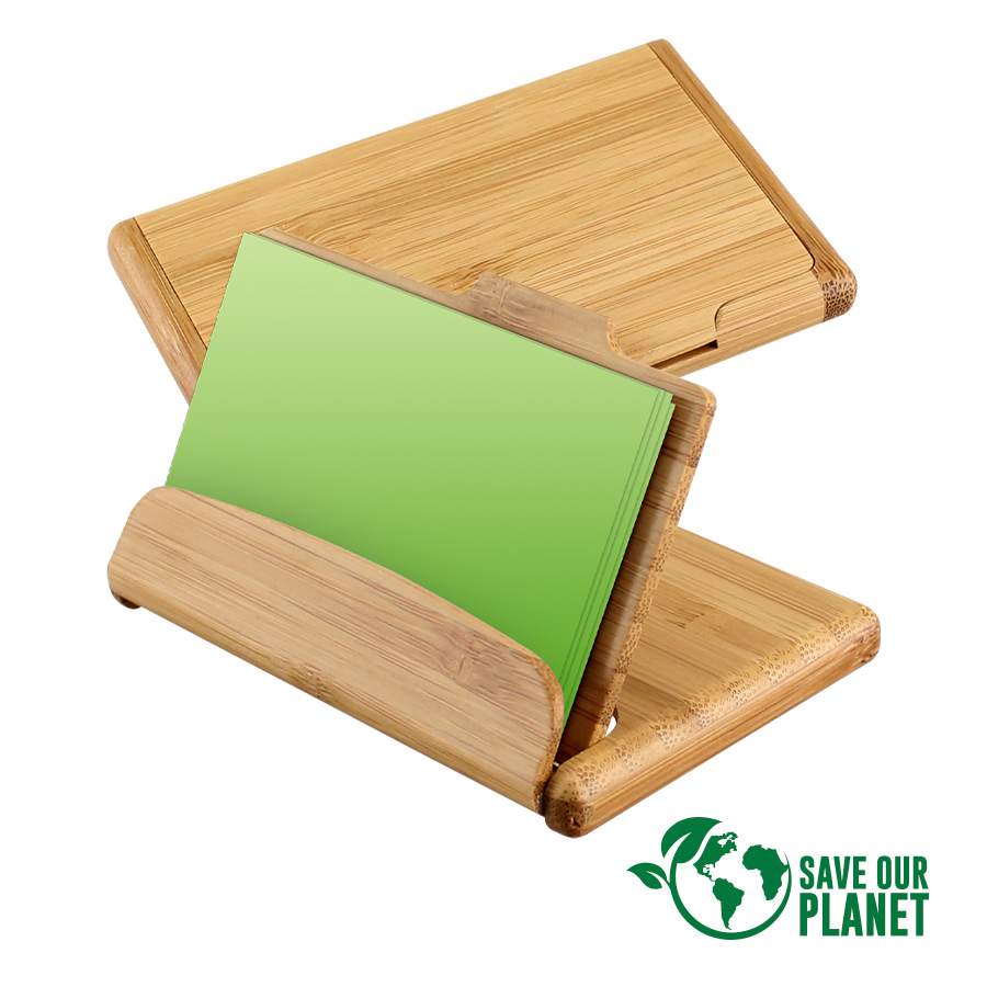 Porta-Tarjetas de Visita de sobremesa 100% madera Bamboo.