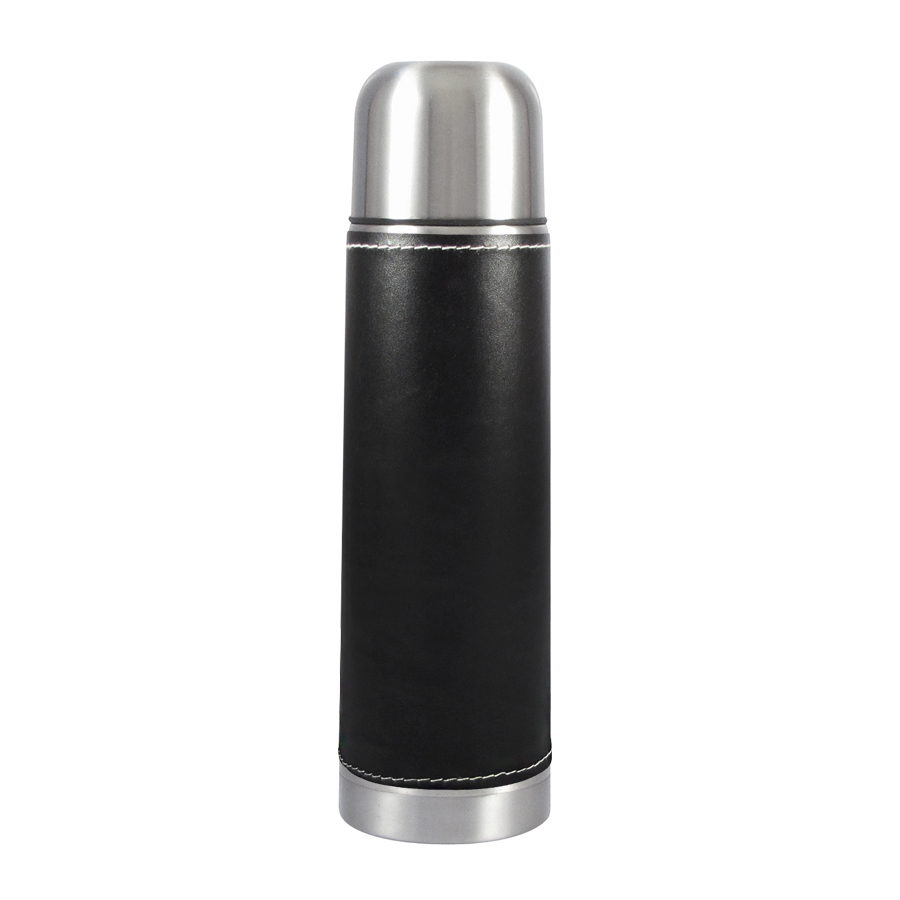 Termo de Acero Inoxidable de 1/2 Litro, con funda de PU negro (removible).