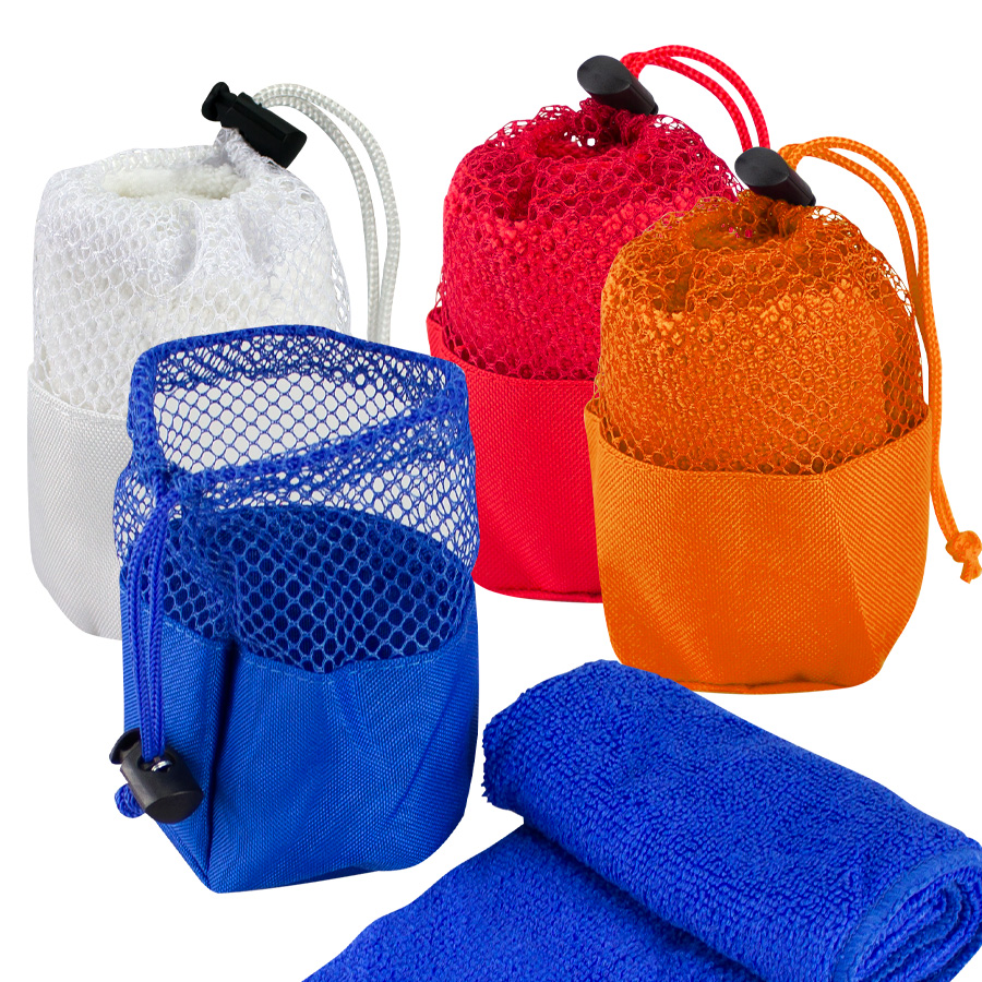 Toalla Facial de Microfibra. Presentación dentro de bolsito de poliéster con malla. Fácil de transportar y liviana, ideal para hacer deportes y para el Gimnasio.