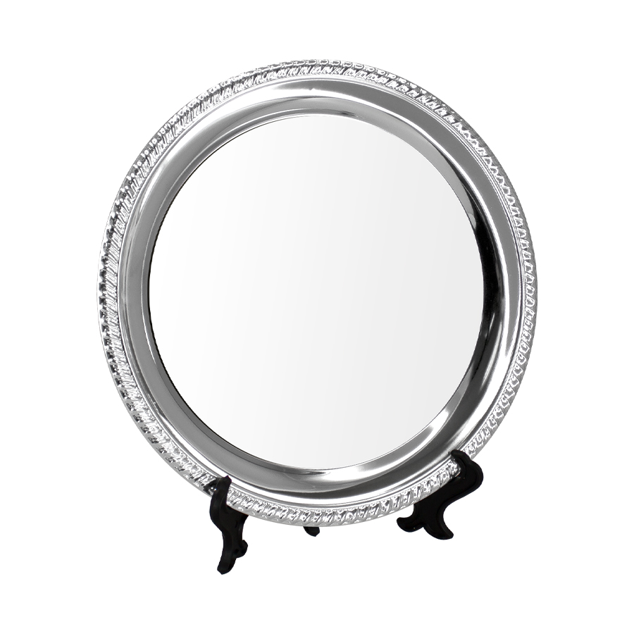 Galvano Plato de Acero inoxidable cromado tamaño grande, con circunferencia metálica para Sublimación. Presentación en bolsa plástica.