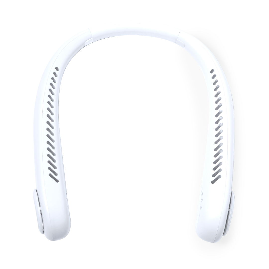Práctico ventilador portátil fabricado en resistente ABS. Este elegante ventilador tiene un diseño en forma de collar para colocarlo alrededor del cuello, brindando una sensación refrescante. Ofrece tres posiciones de velocidad diferentes y es recargable mediante su batería de 800 mAh, cable Micro USB incluido. Presentado en caja de diseño kraft. 3 Posiciones. Batería 800 mAh